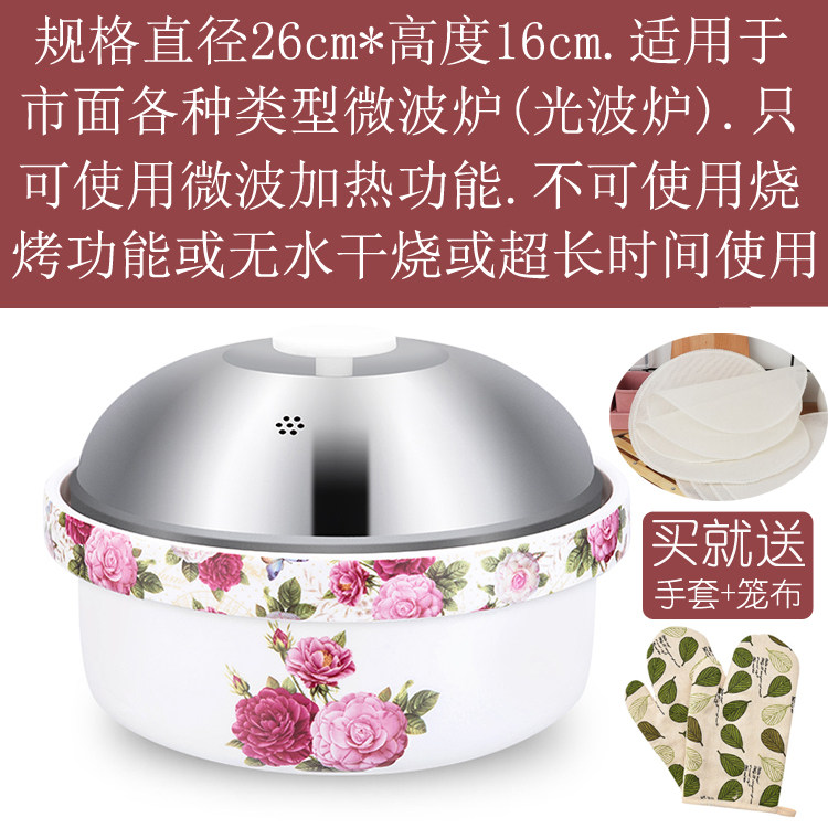 Microwave oven special steamer vessel heating bowl steaming rice pot steaming box ceramic treasure stainless steel light wave furnace container