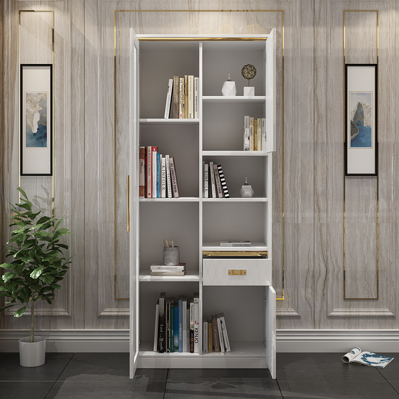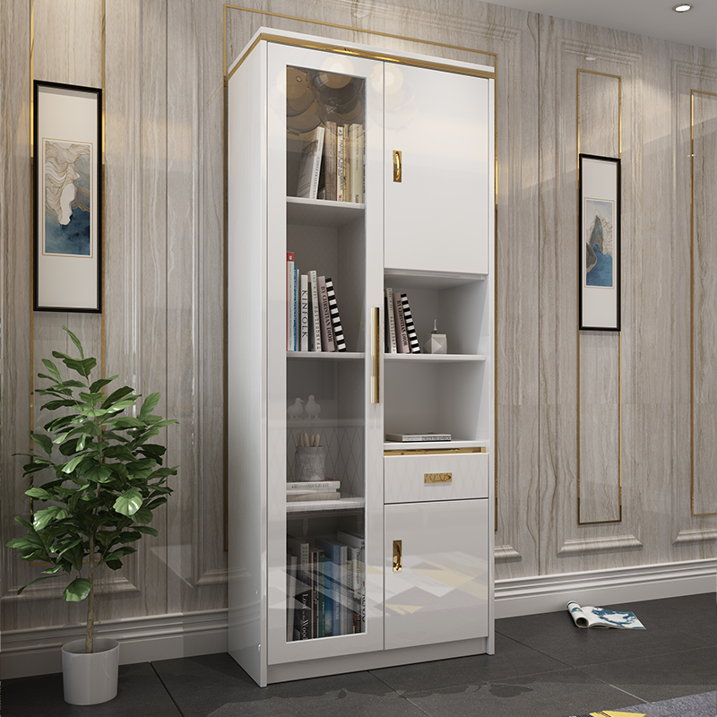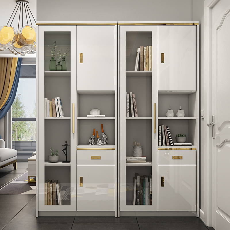 Simple light luxury stainless steel bookcase bookshelf file cabinet modern floor rack with glass door storage storage cabinet