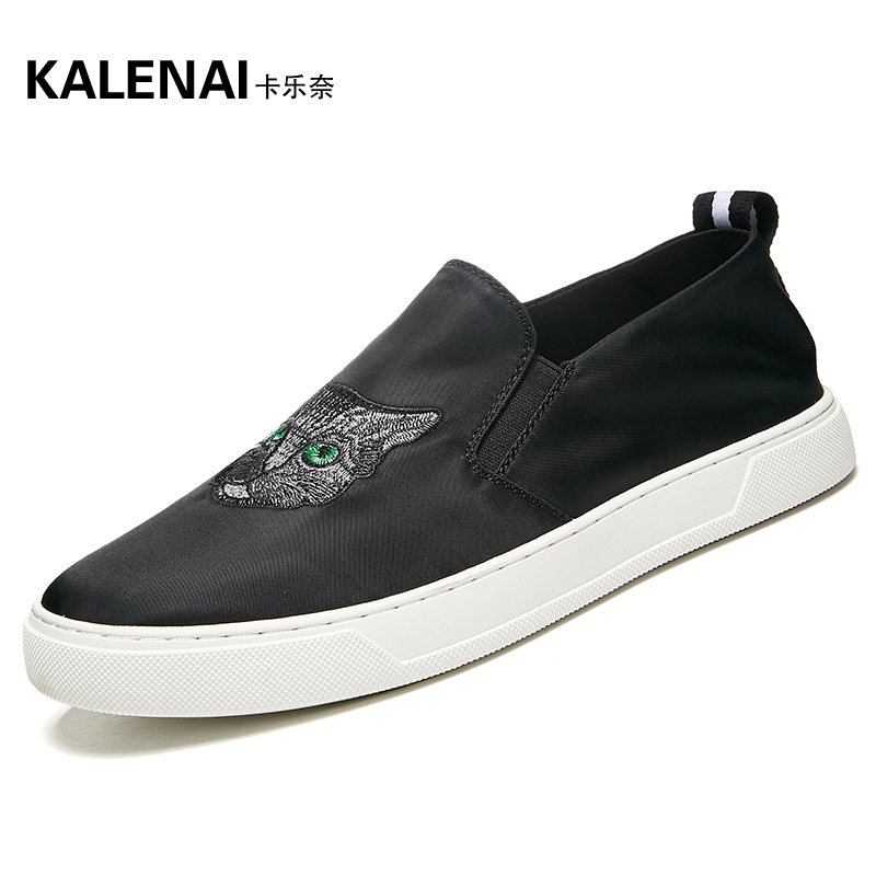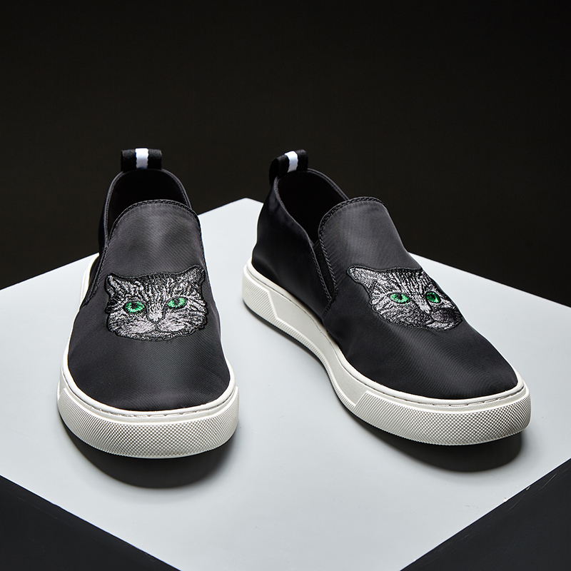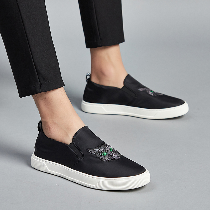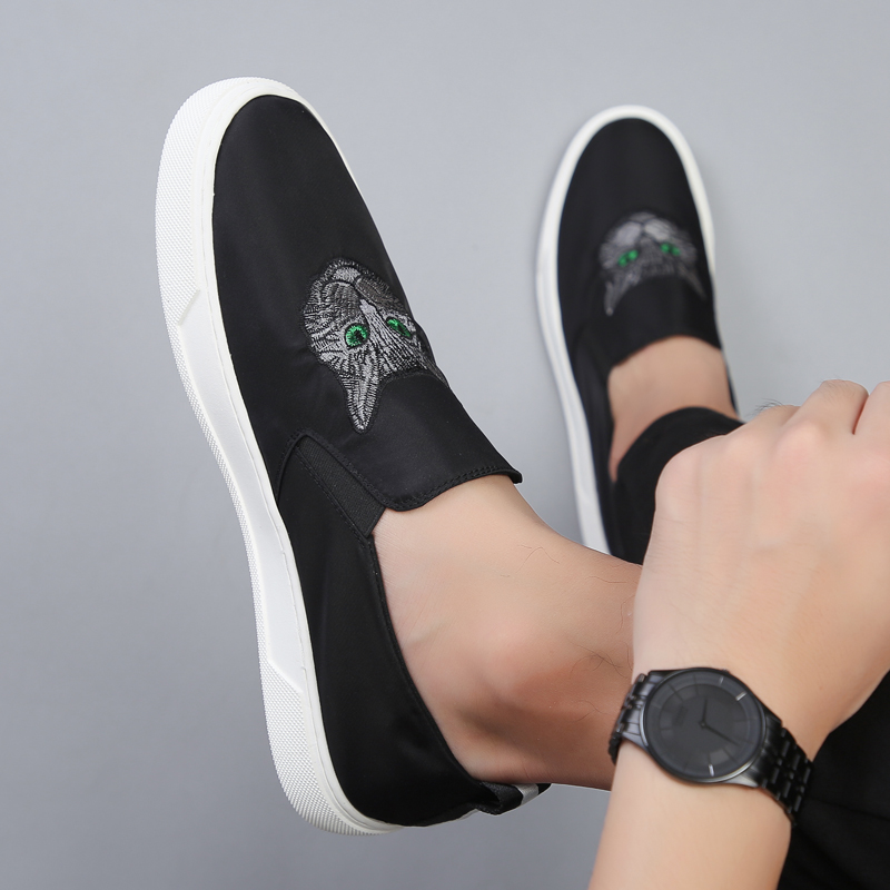 Loafers men's summer breathable trend British comfortable casual fashion all-match cat head embroidery slip-on slip-on shoes