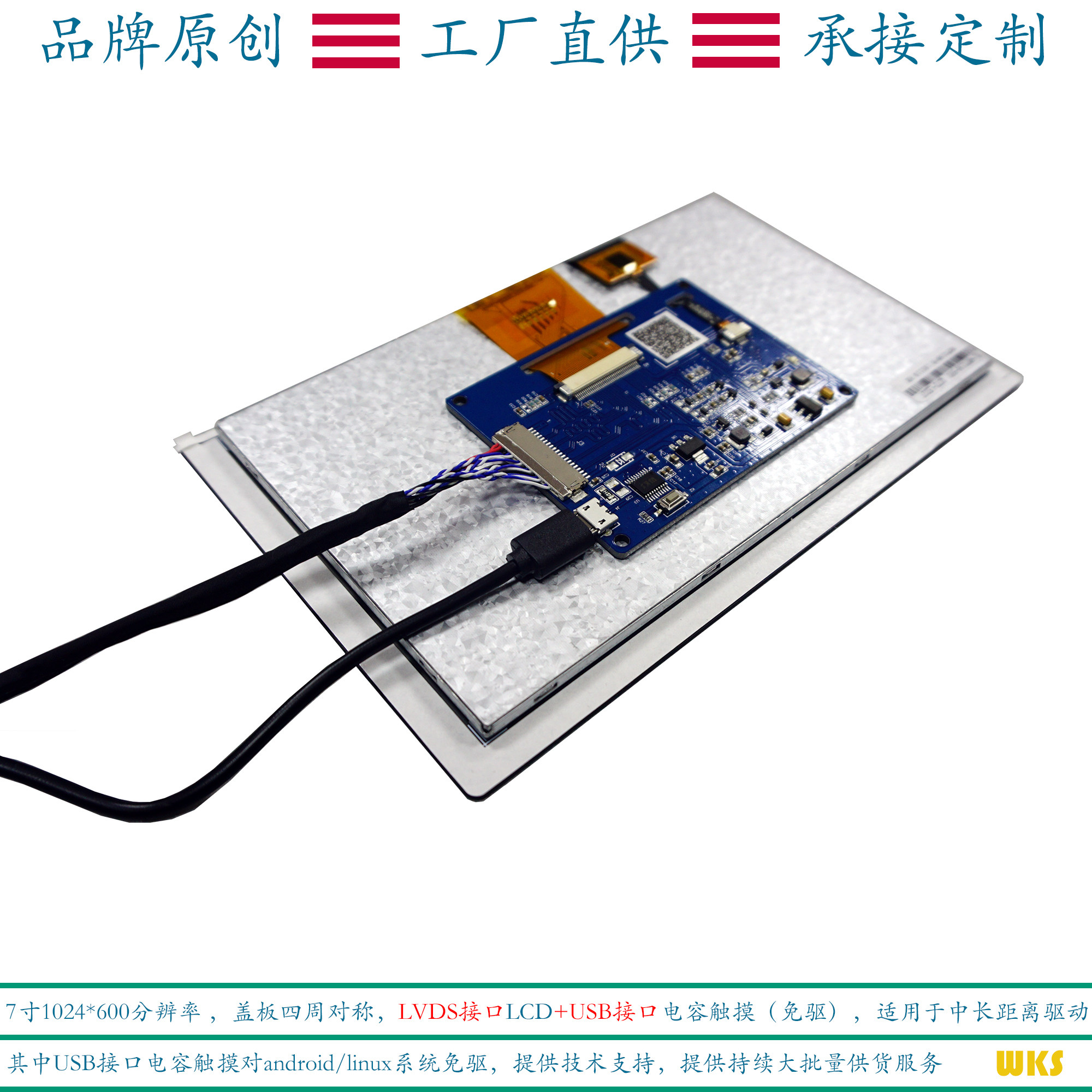 7 inch LVDS capacitive touch module 1024x600 resolution four weeks symmetric large cover plate USB multi-touch