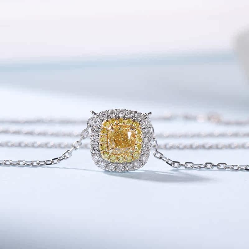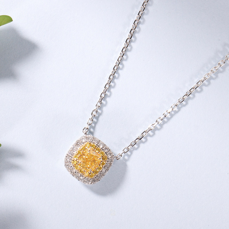 ten thousand Len Jewelry New Pint White 18k Gold Yellow Drill Pendant Natural Color Diamond Yellow Diamond Necklace Diamond Neck Accessories Customizable