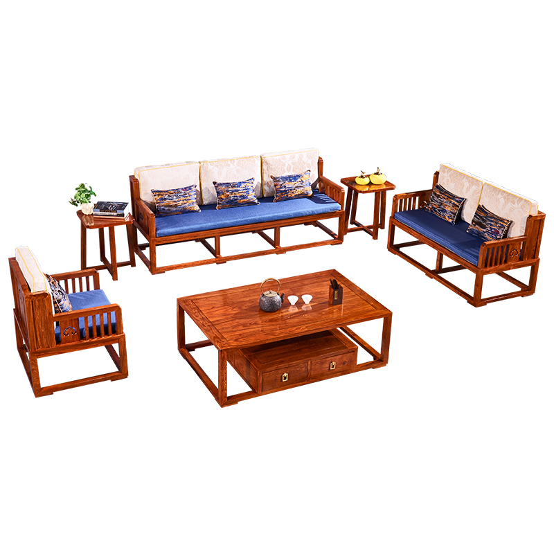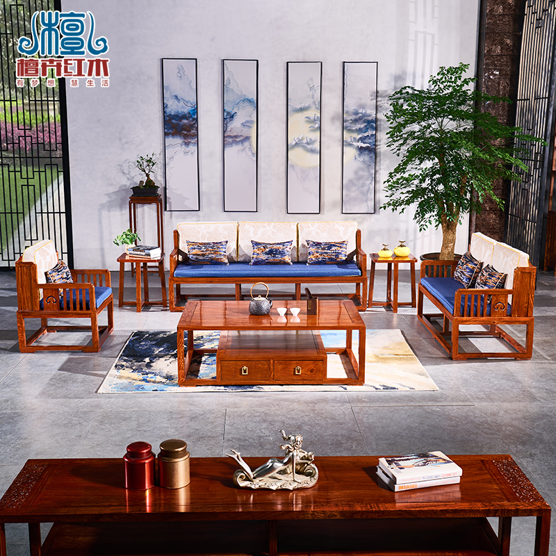 Red Wood Furniture New Chinese Style Hedgehog Purple Sandalwood Sofa Combined Living Room Small Family Flower Pear Wood Full Solid Wood Sofa