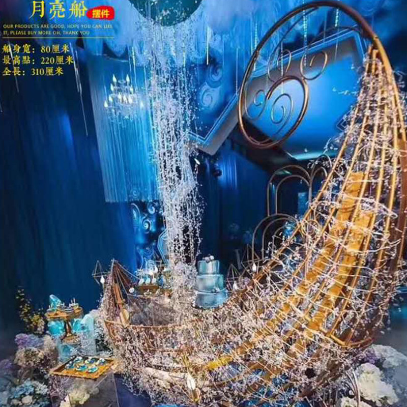 New Wedding Props Moon Boat Iron Art Pendulum Pieces Road Leading Themed Wedding Stage Arrangement Large Pendants Greet Guests
