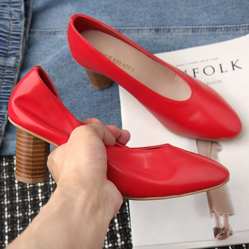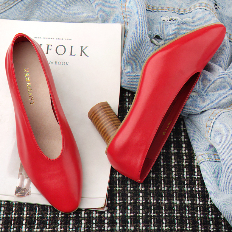 Grandma shoes women's 2022 autumn new thick heel leather witch shoes round toe small size high heel retro shallow mouth single shoes - Taobao