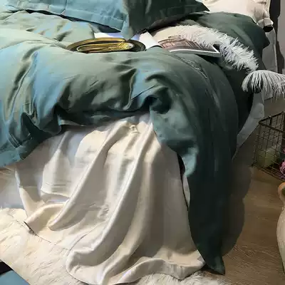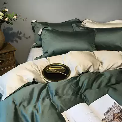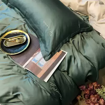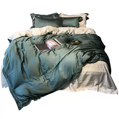 80 Tencel four-piece solid color double-sided European minimalist bedding European style Ice Silk double bed sheet quilt cover