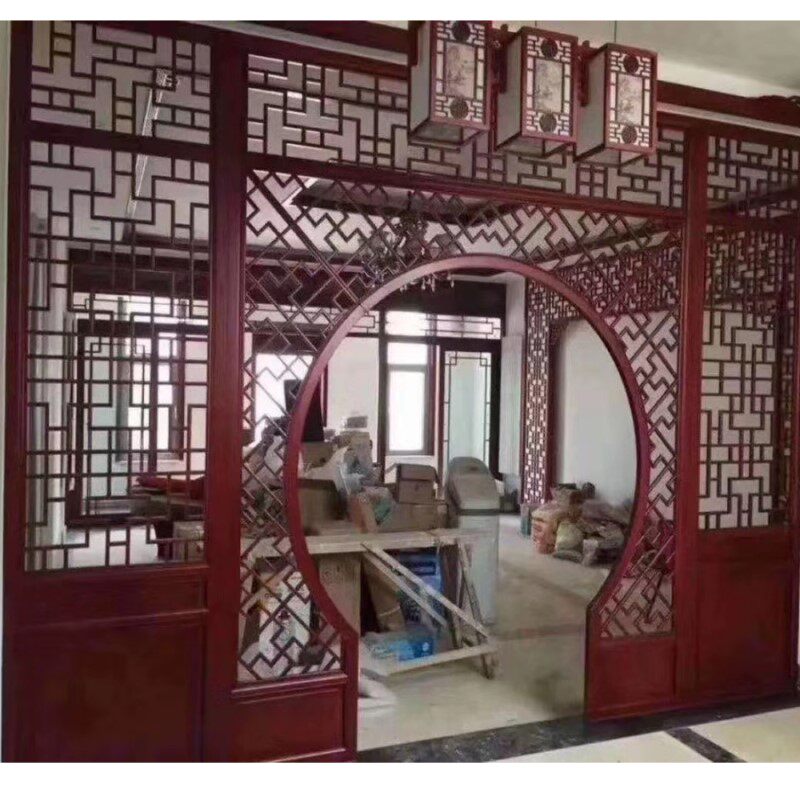 Dongyang wood carving wooden cave door custom tenon socket process Chinese classical antique decoration TV background wall