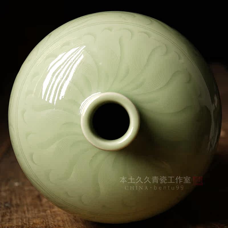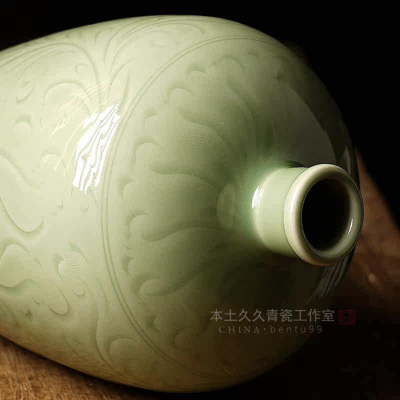 Wang Wu Pure Handmade Plum Bottle Dragon Springs Green Porcelain Ceramic Ware Home Living Room Large Swing Piece Collection Illustrator Vase Flower