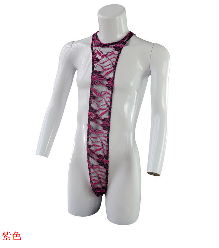 Sexy transparent view men's erotic lingerie jumpsuit lace thong Sao men's bed flirting love