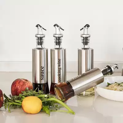 Seasoning oil pot set kitchen glass oil bottle leak proof seasoning bottle stainless steel oil tank household soy sauce seasoning bottle