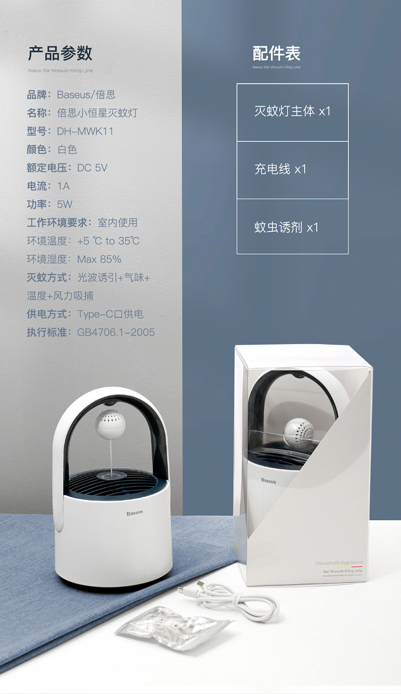 Baseus anti-mosquito lamp artifact catching mosquito repellent mosquito household physical mosquito sweep light mute anti-indoor electrical appliances