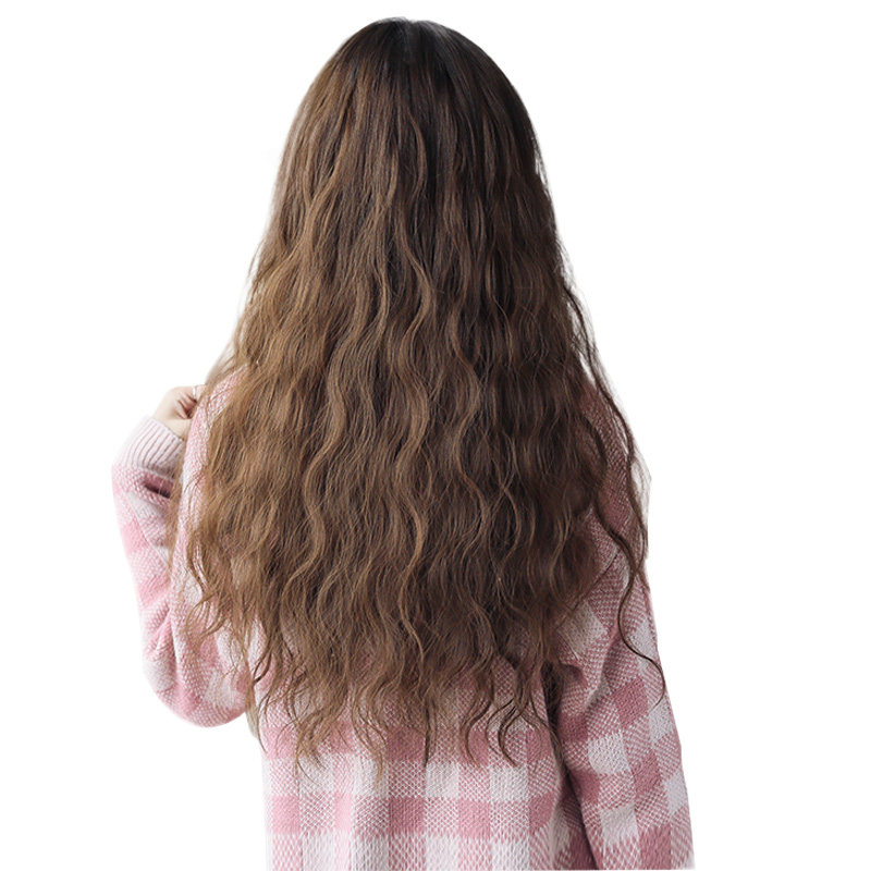Real hair piece wig Female long curly hair Corn perm UV type one-piece type 60 incognito hair extension Self-connection full human head silk