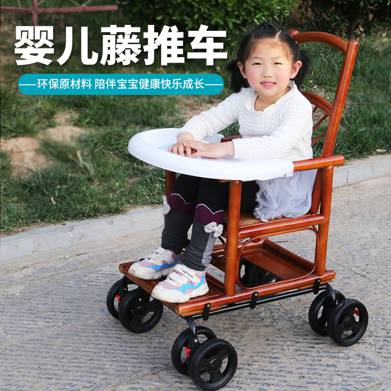 Baby Sitting Chair Cart Baby Boy Real Indonesian Rattan Chic Summer Light Bamboo Sit Type Simple Shock Absorbing Wheel Small Cart-Taobao