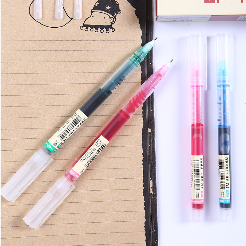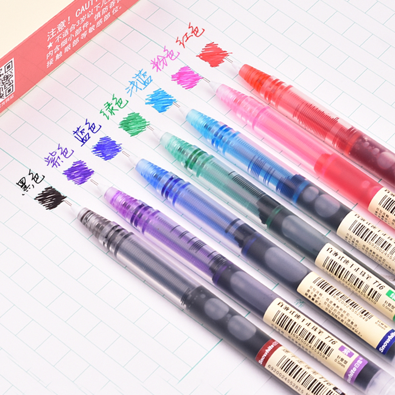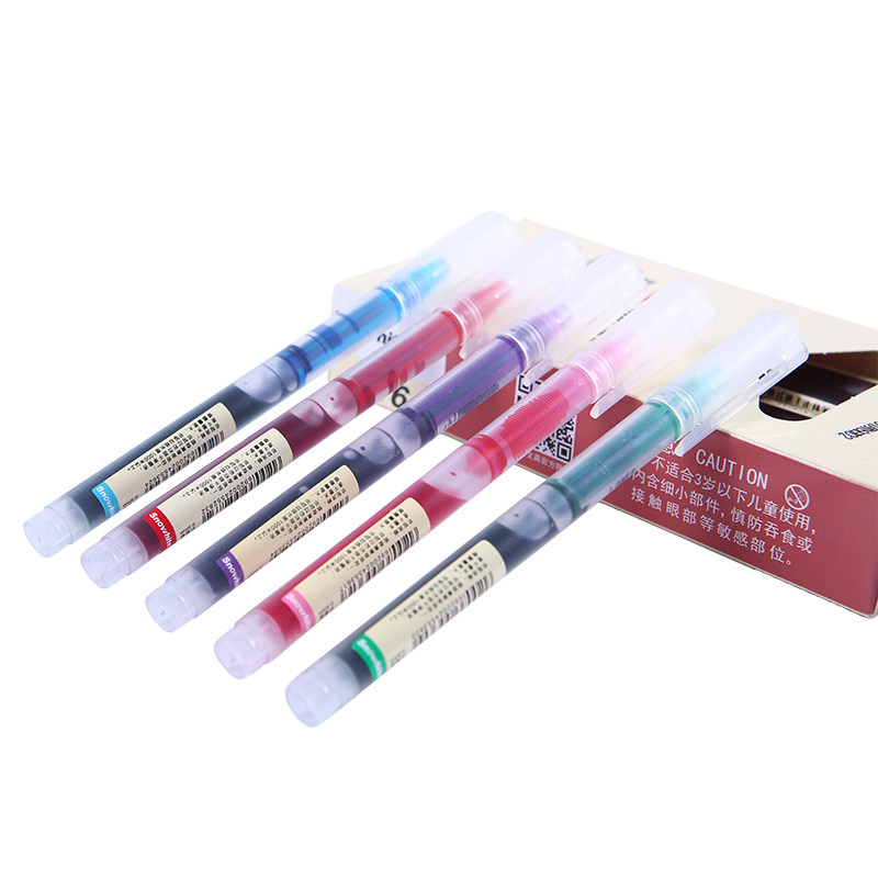 White Snow Straight Liquid Type Water-based Ballpoint Pen Speed Dry Color T16 Medium Pen 0 5mm Full Needle Tube Large Capacity 5 Color Ink Optional Frosted Pen Rod Translucent Pen Marker Pen