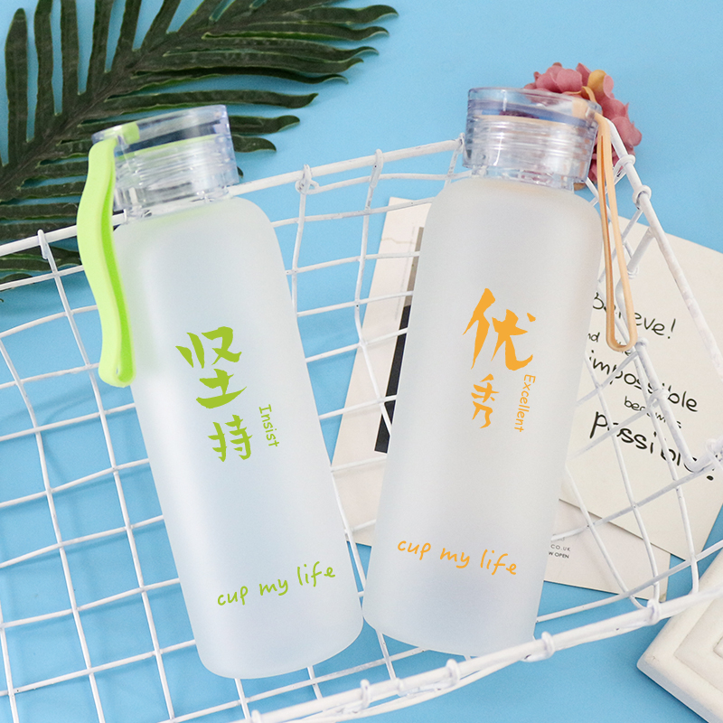 Korean creative gradient frosted glass men and women portable water Cup custom LOGO printing tea cup advertising Cup