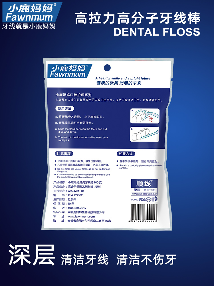 Deer mother dental floss bag Guihu ultra-fine family pack dental floss picking toothpick dental floss stick a total of 600 pieces