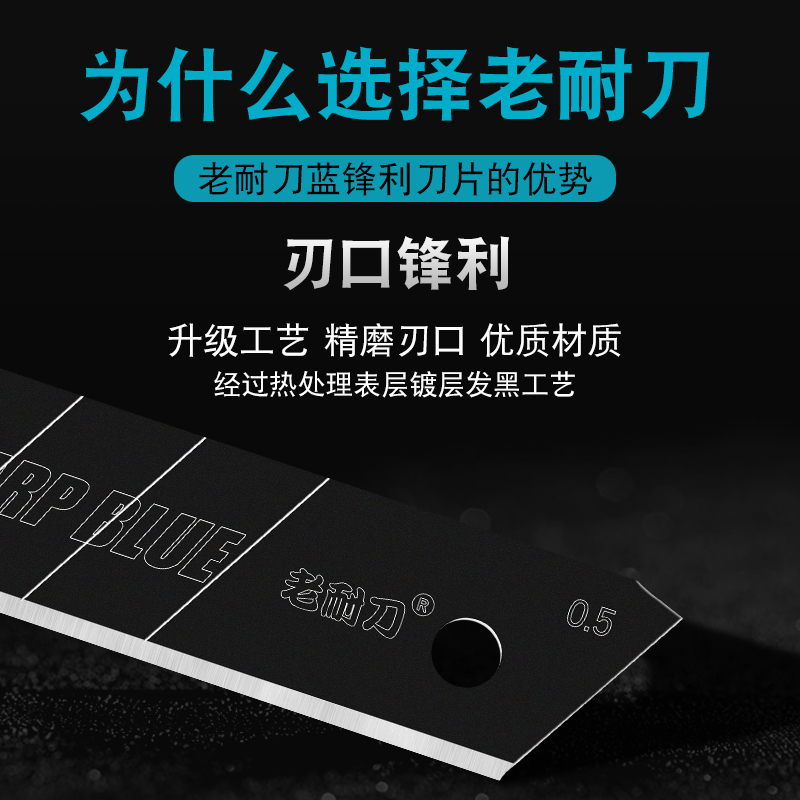 Woodpecker Art Blade FD-BL50 Old Durable Knife Series All Black Large 18mm Blue Sharp Wallpaper Medium Blade