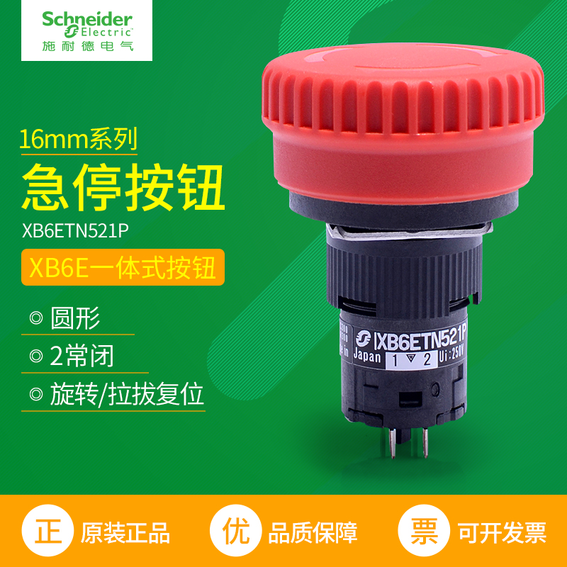 Schneider emergency stop button switch mushroom head XB6ETN521P round 2 normally closed rotation reset pull reset