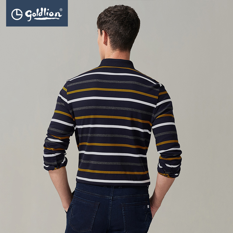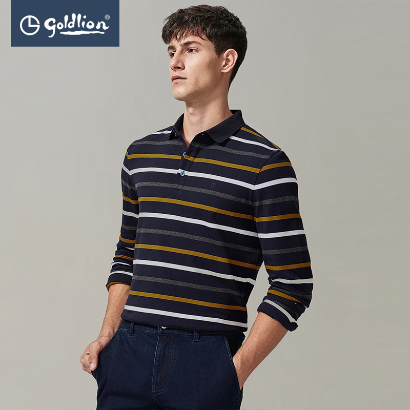 Jinli Laiqiu business casual men's comfort pure cotton sweat absorption breathable colorful striped lapels long sleeves T-shirt hui]