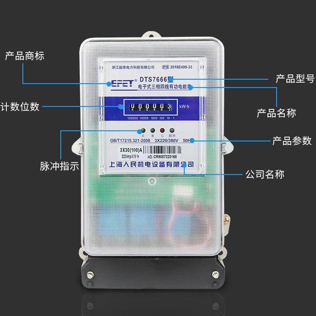 Shanghai people's three - phase four - wire watch watch fire meter 380V100A meter transparent electric energy meter