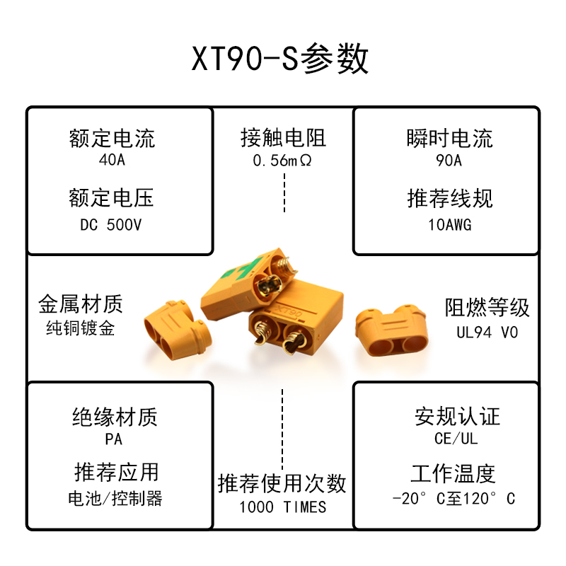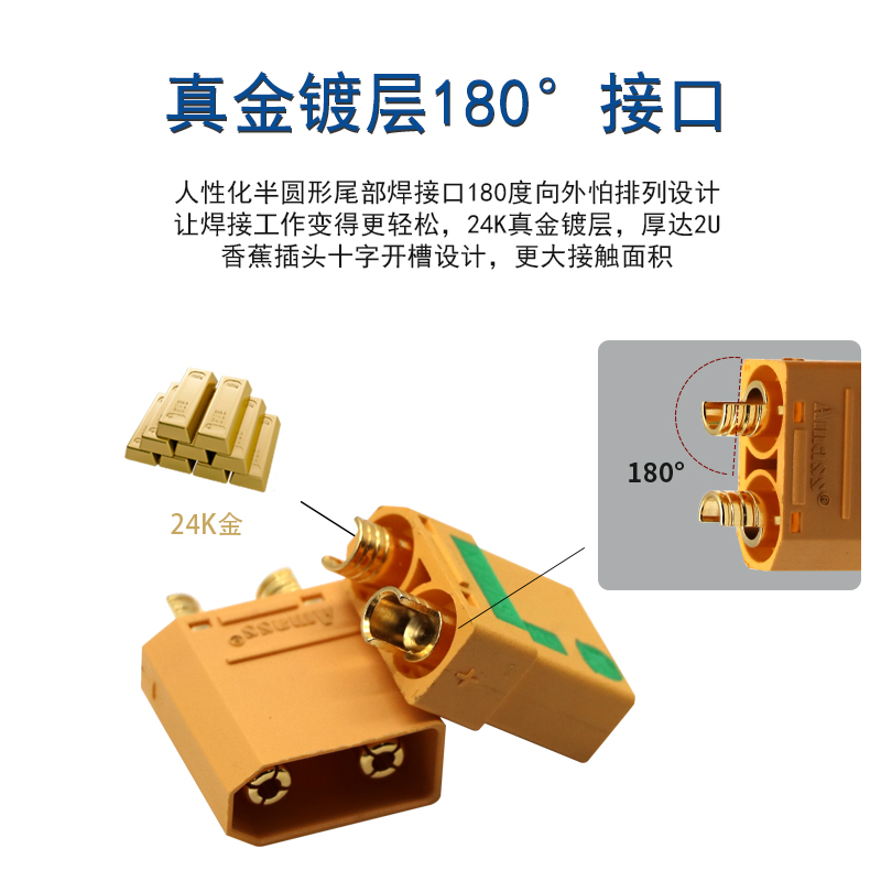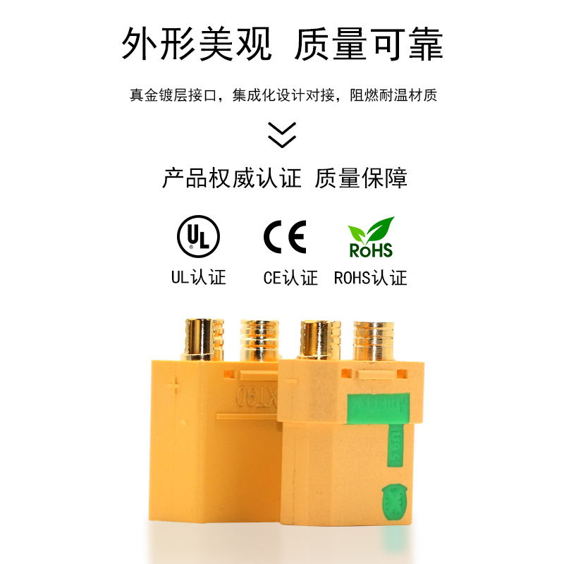 XT90S male and female head aircraft model electronic governor accessories yellow lithium battery transfer interface 90A gold-plated banana plug connector