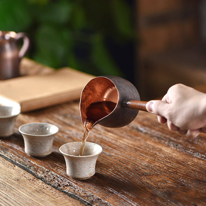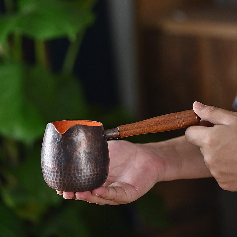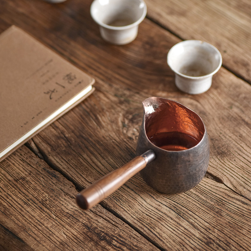Kazeya Yamaboku Japanese style handmade hammer pattern fair cup side put heat-resistant thickened pure copper vintage home long-handled tea dispenser
