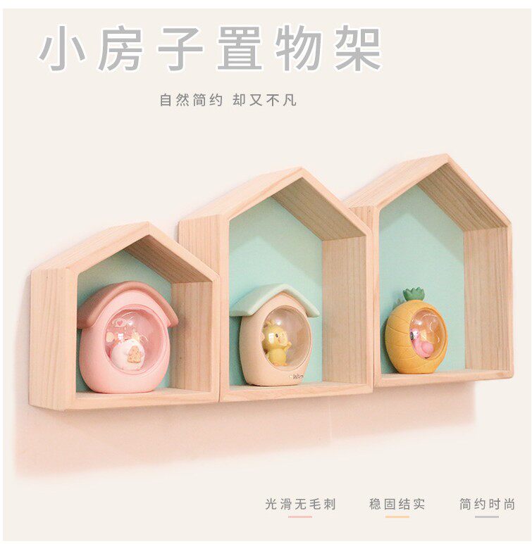INS Nordic style children's rack clothing store decoration shelf original solid wood on the wall storage shelf display shelf