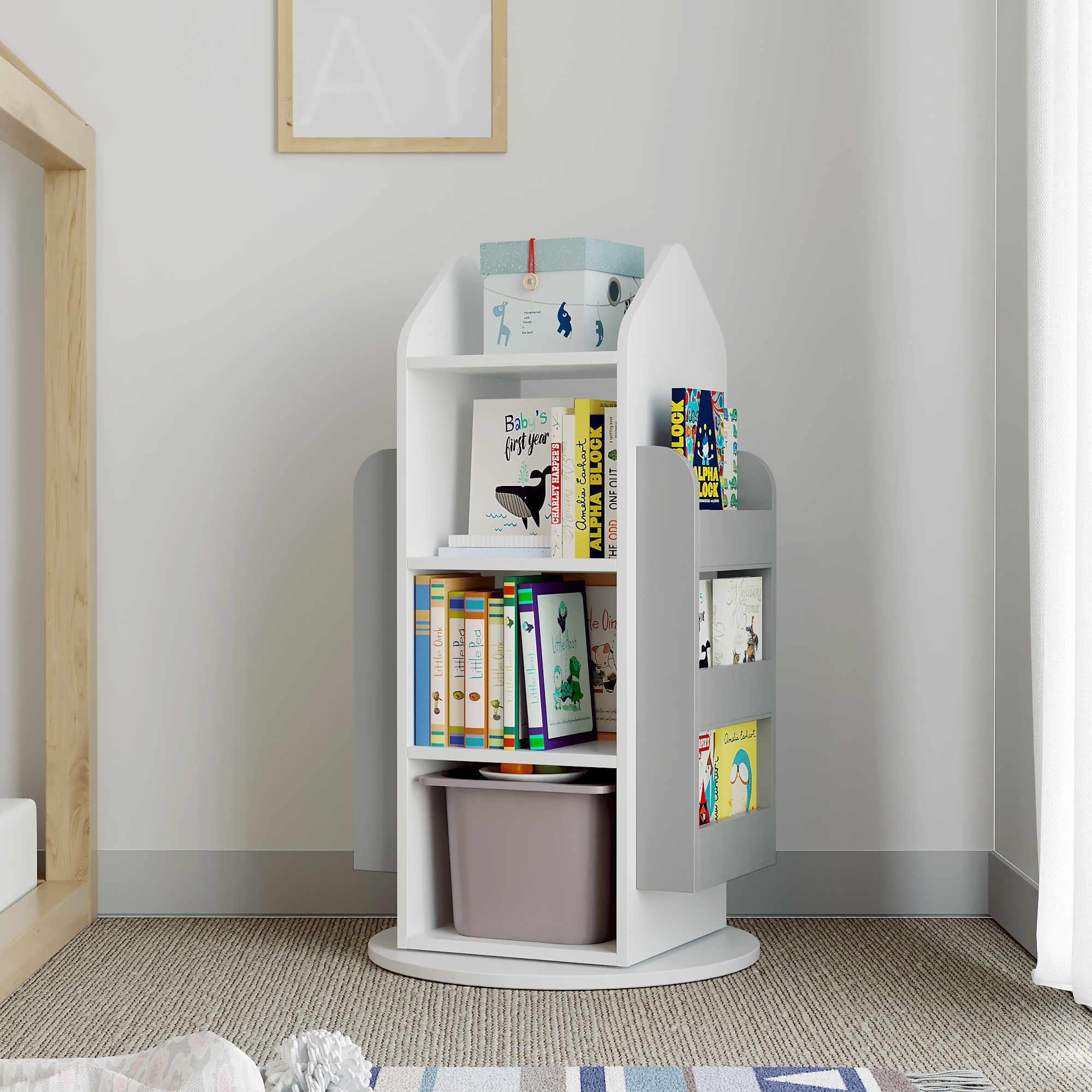Children's rotating bookshelf white gray log rotating bookshelf children's rotating bookshelf blue green powder children's rotating bookshelf powder children's rotating bookshelf blue-green children's rotating bookshelf white children's rotating