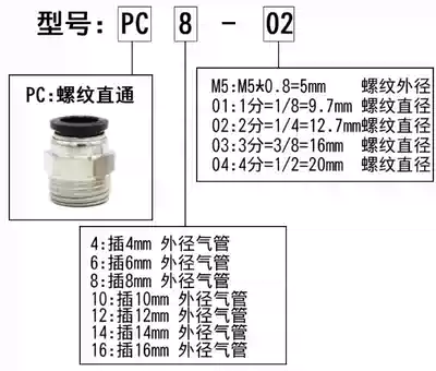 Black copper nickel plating quick connector PC8-02 threaded straight through 4-M5 air pipe quick plug 6-01 10-03 12-04