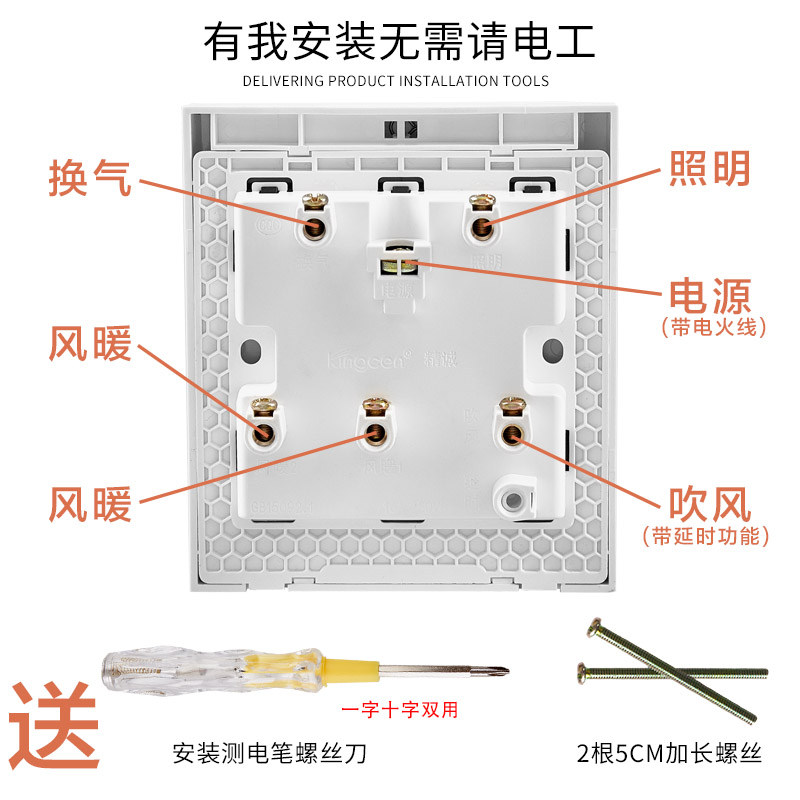 Toilet Wind Warm Bath Bully Five Open Switch Blow Time-lapse 5 Open Switch Slip Cover Bathroom Waterproof Switch Five All-in-one-Taobao