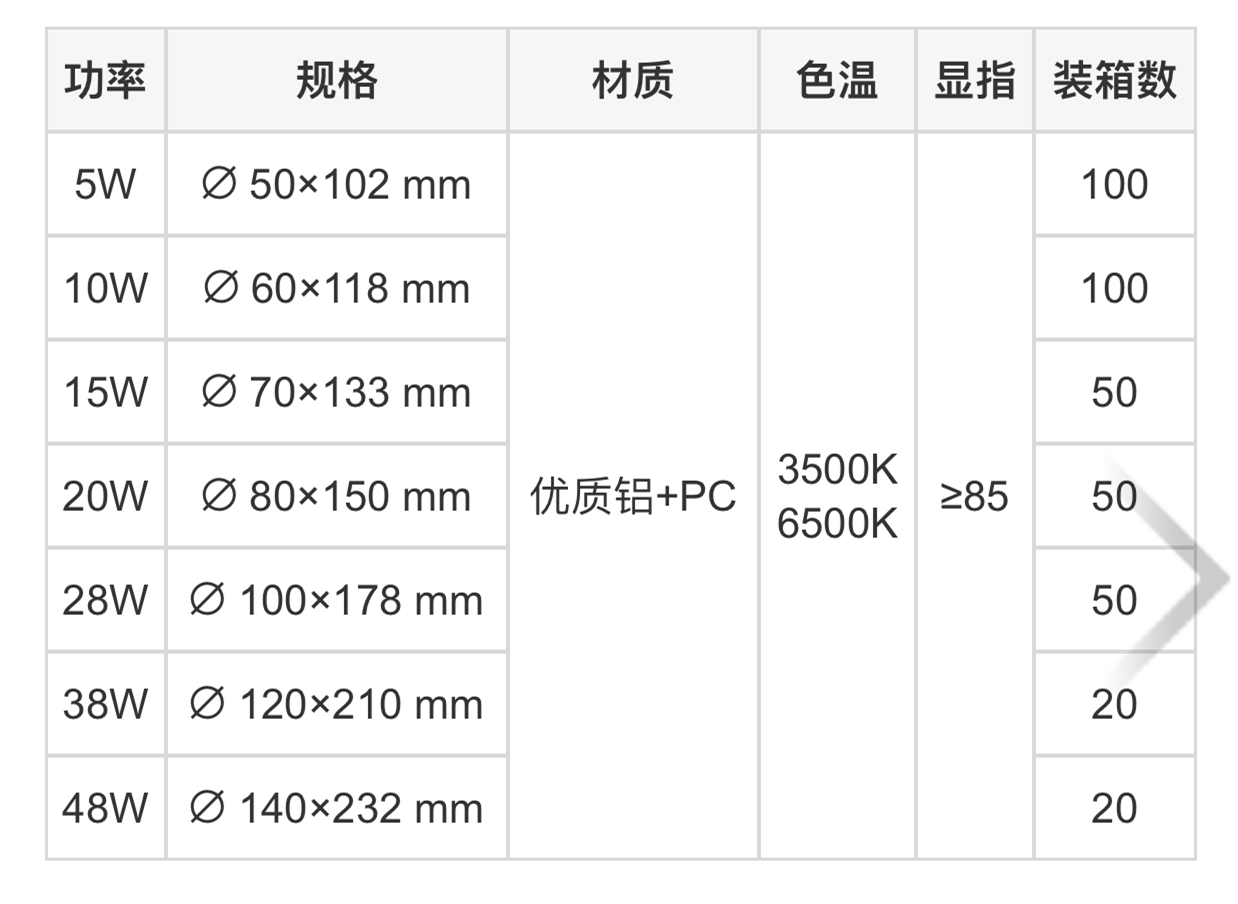 5W 5W white light 10W white light 15W white light 20W 28W white light 38W white light 48W white light