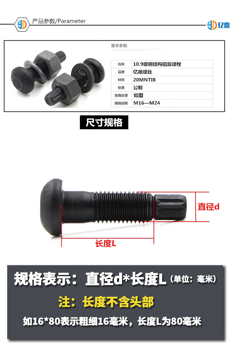 Steel structure high strength bolt torsion type 10 9S stage screw M16M20M22M27M30*45~200