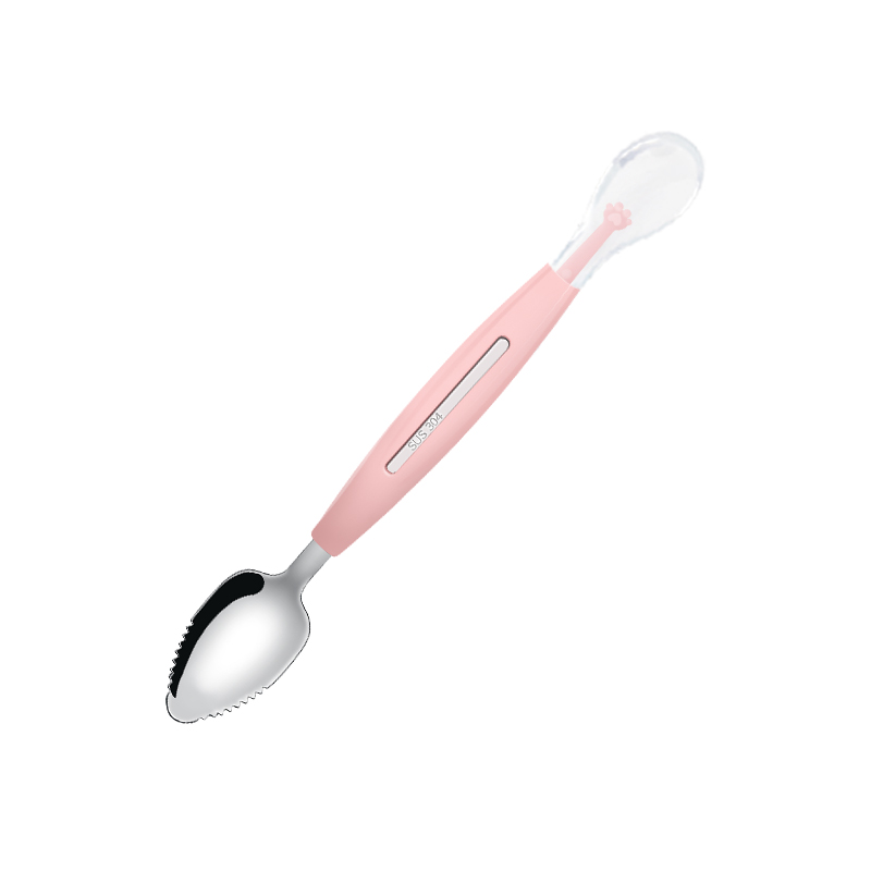 316 cherry blossom pink double head scrapper spoon (giver training fork spoon)