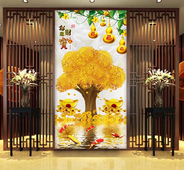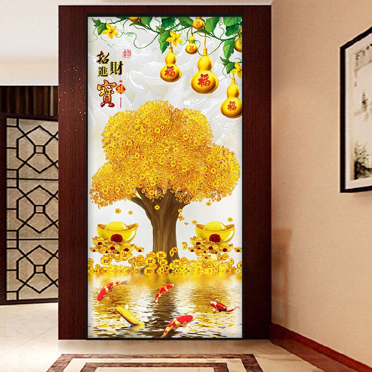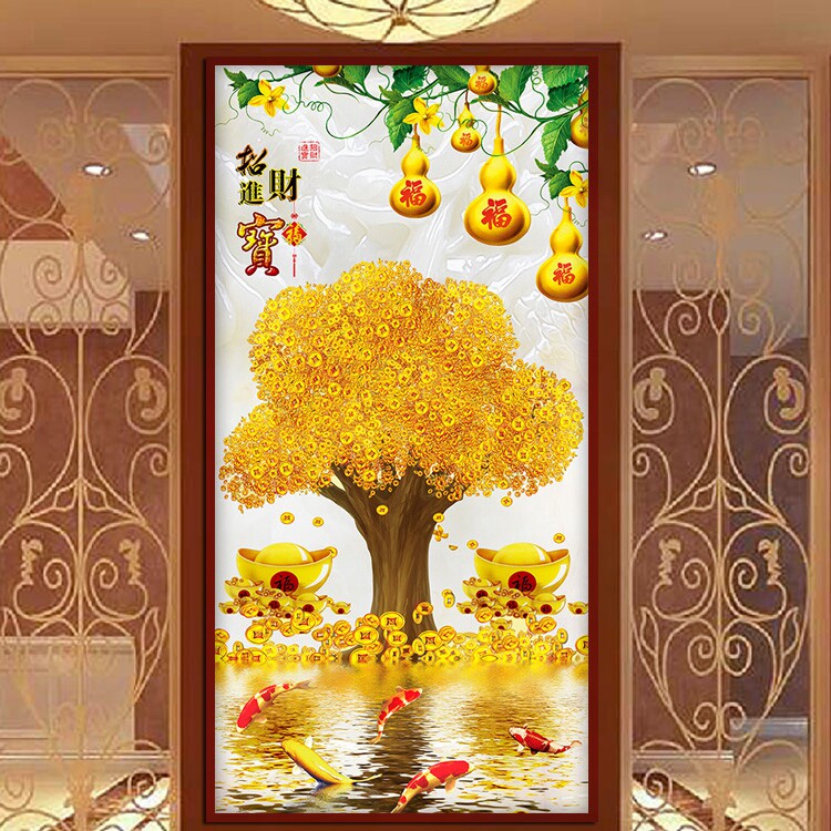 Cross embroidered gold full of 2021 new full drilling living-room rocking money fortune tree vertical version points glued to the diamond 5D diamond painting