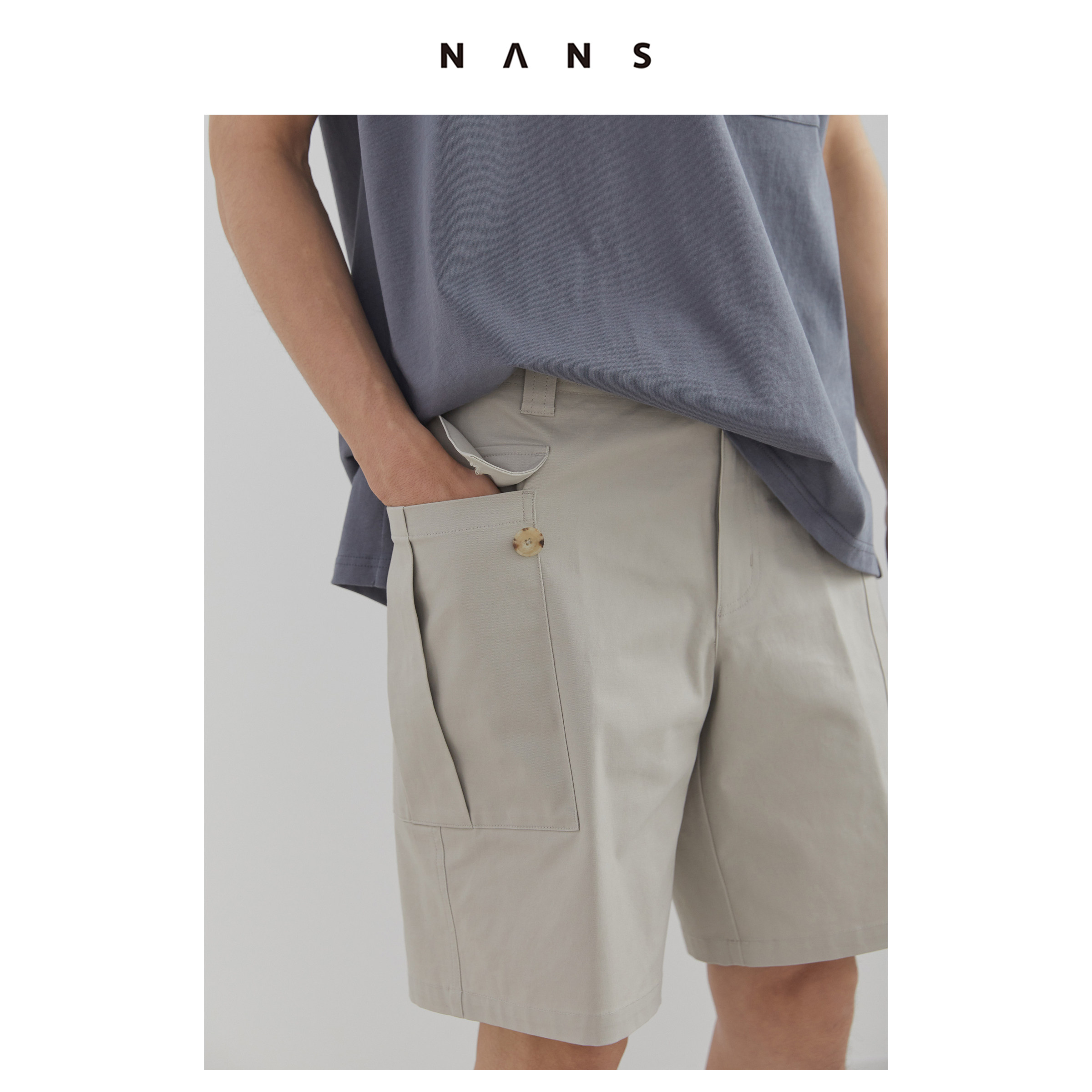 (NANS) grinding of woolen wide pocket tooling 50% pants POCKET CARIGO SHORTS-NS3B14