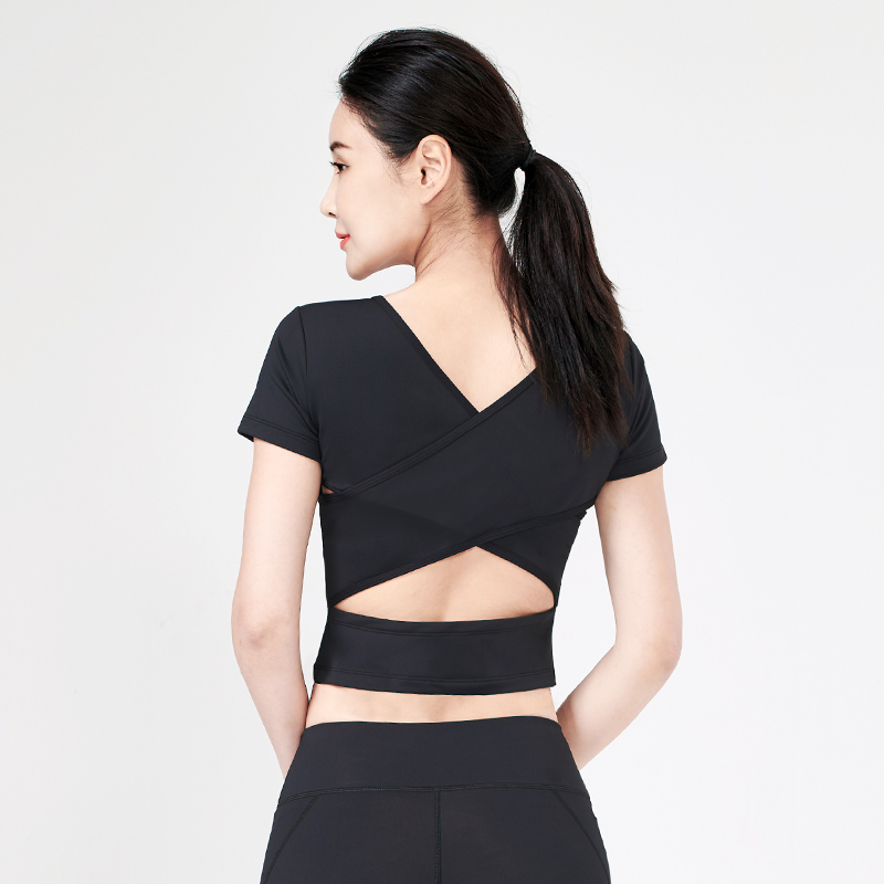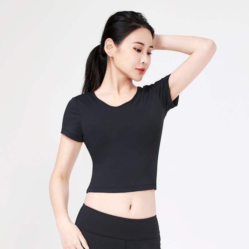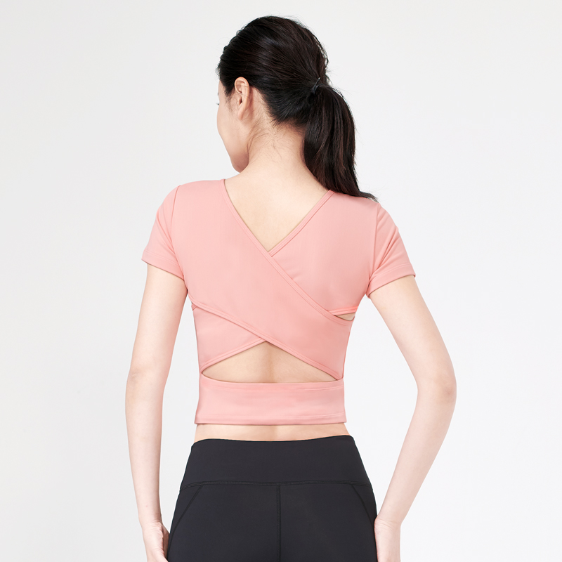 Net reddits short sleeve yoga clothes with chest cushion spring summer season thin section speed dry dew with short choreography yoga clothes