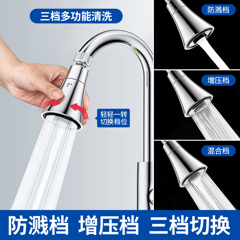 All copper three-speed splash-proof-360 degree rotating flushing(extended)
