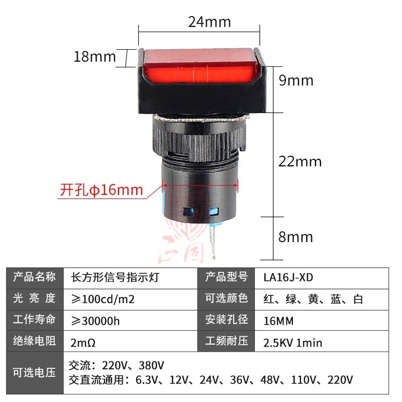 Rectangular indicator light LA16J-XD LED high power signal light distribution cabinet 2 feet welding drilling 16mm