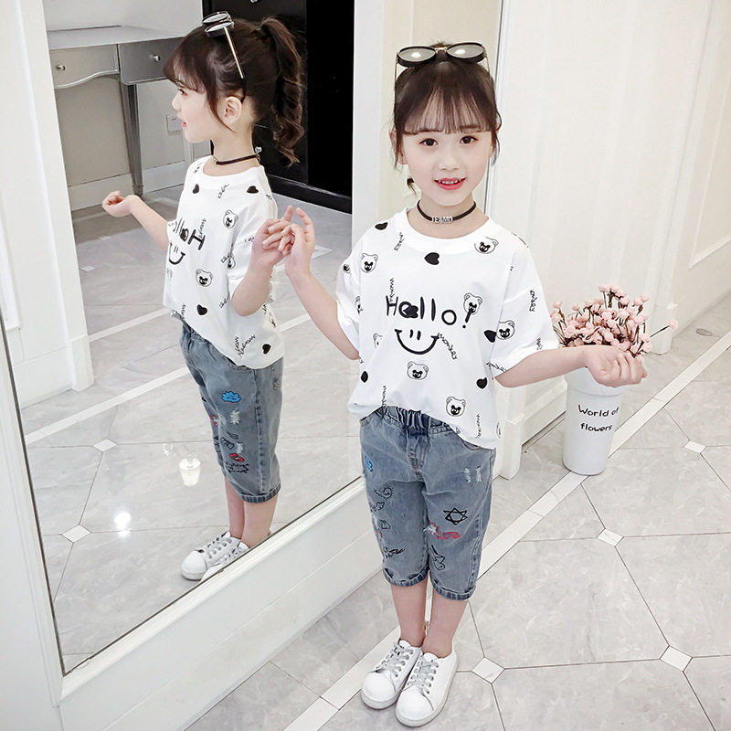 Girls summer short-sleeved T-shirt children's cotton middle-aged children's Western style summer half-sleeved bottoming shirt children's clothing T-shirt trend