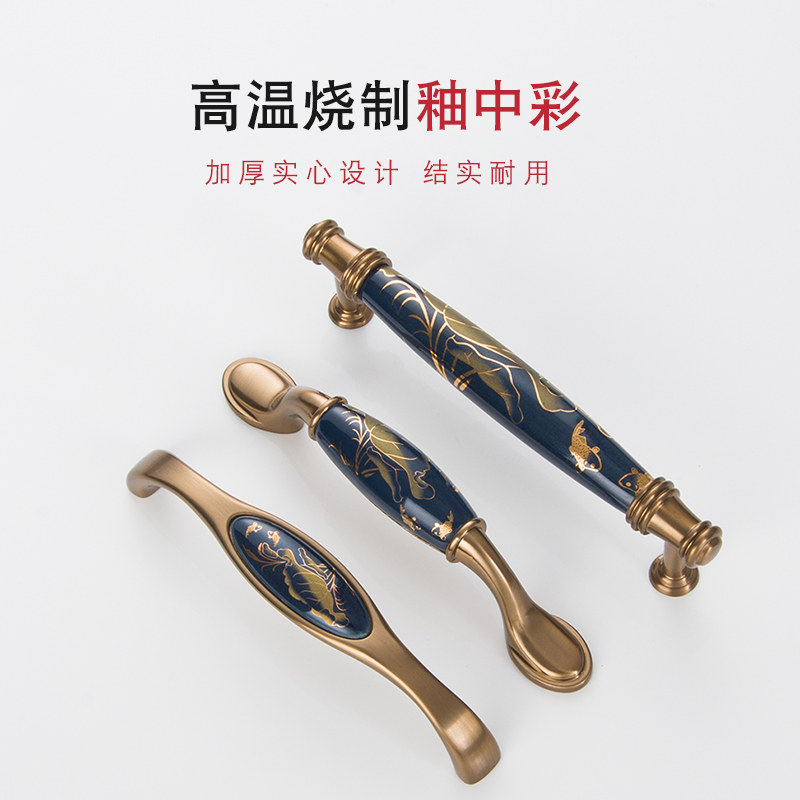 Chinese ceramic handle new Chinese cabinet door drawer handle light luxury European wardrobe hardware handle cabinet door handle