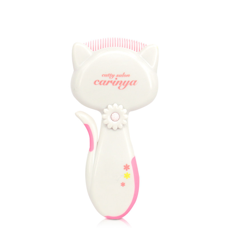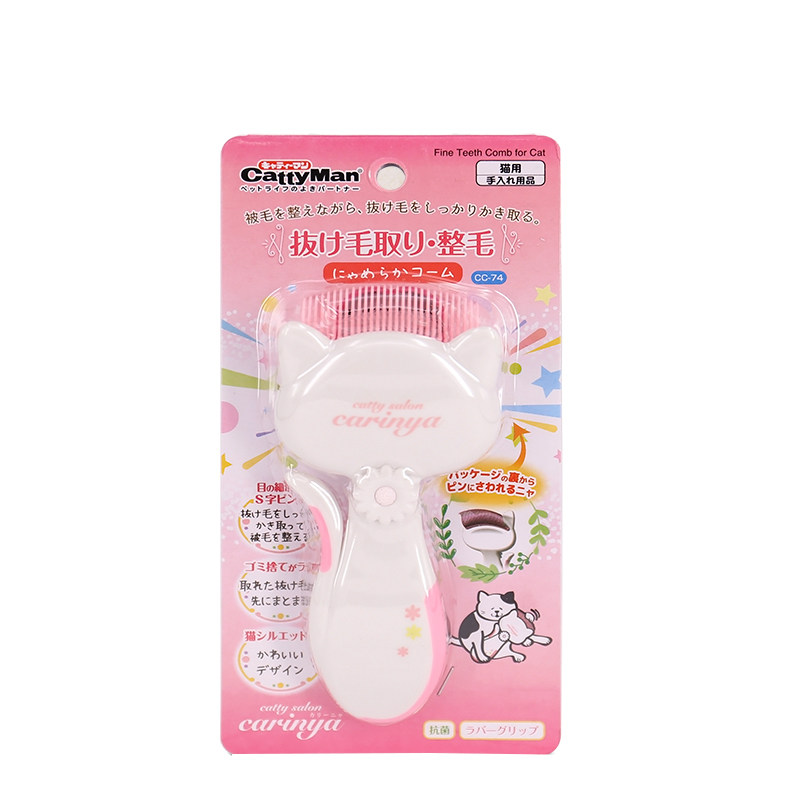 The Japanese dog cattysalon cat uses a bent comb brush to remove floating hair