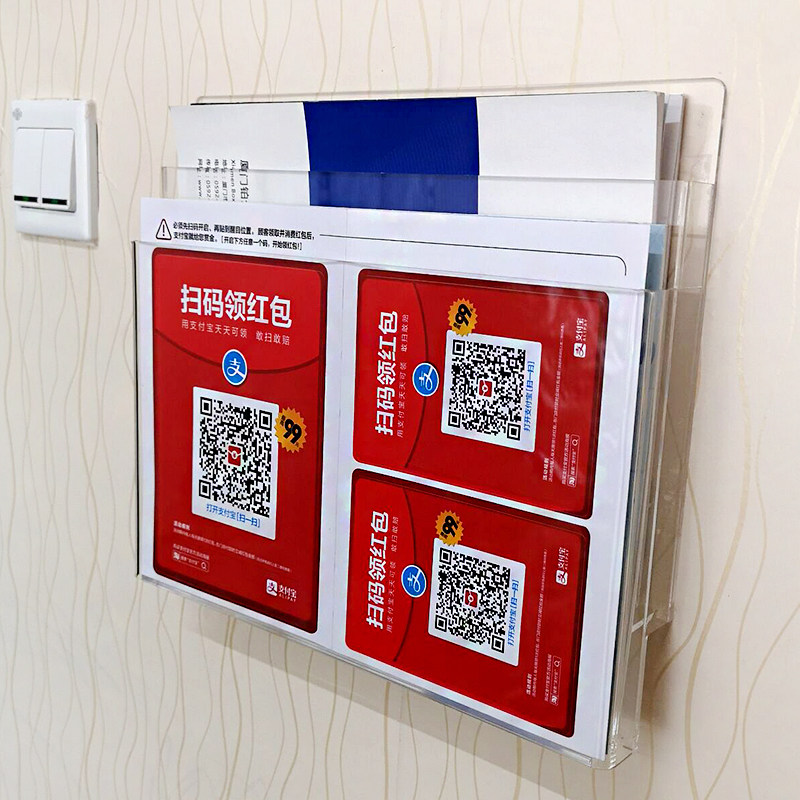 Acrylic A4 Double Layer Wall-mounted Box Propaganda Page Placement Box Office Workshop Hotel Hospital Front Desk Information Containing Box