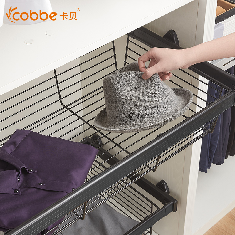 Cabbay Wardrobe Pull Basket Push-and-pull Drawer-Type Containing Storage Basket Cloakroom Shelf Home Black Telescopic Trousers Rack