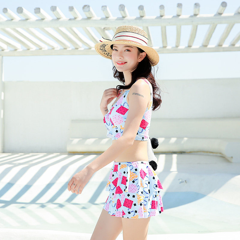 2021 new swimsuit Two style ladies dress style Conspicthin Conservative Flat Corner Spa Degree Beach Fake Korea small Qingxin