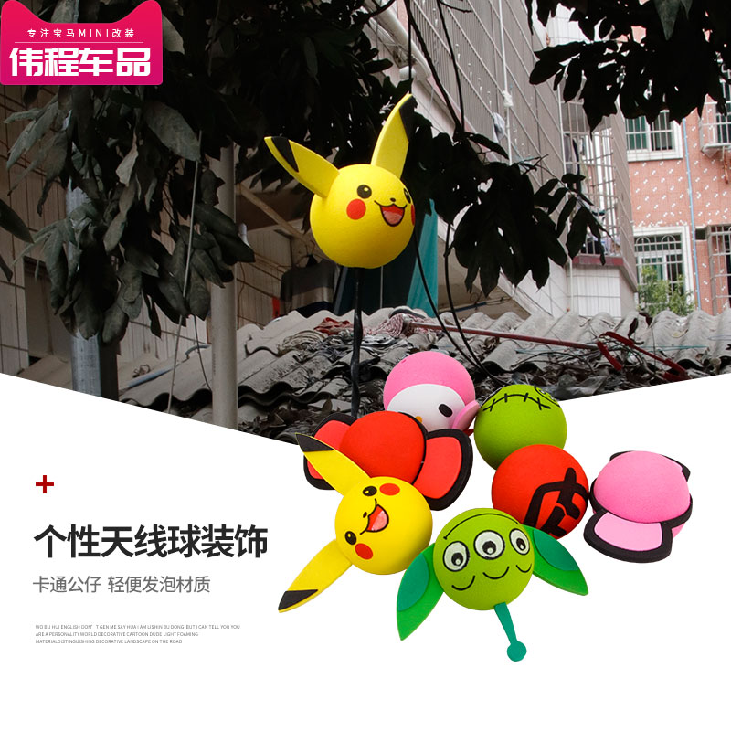 BMWmini Car Antenna Decoration Ball Exterior Adornment Cute Cartoon Paparazzi Antenna Ball Roof Retrofit Universal