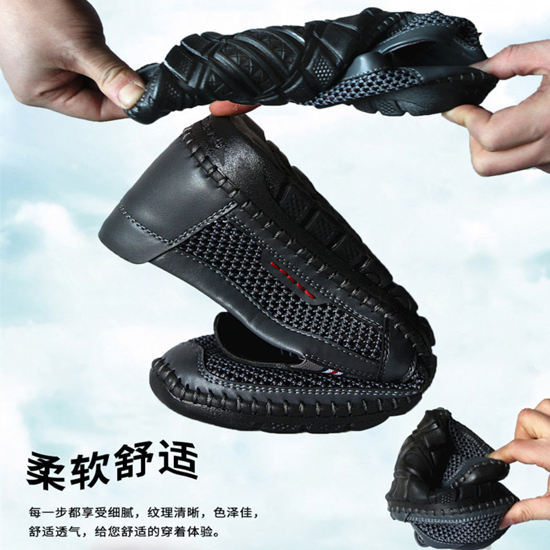 Old Beijing Cloth Shoes Men's Summer Casual Net Face Shoes Mesh Cloth Face Soft Bottom Breathable Non-slip Middle Aged Dad Shoes Hollowed-out Sandals