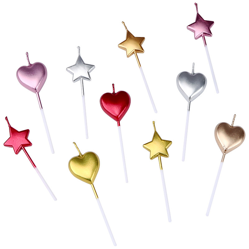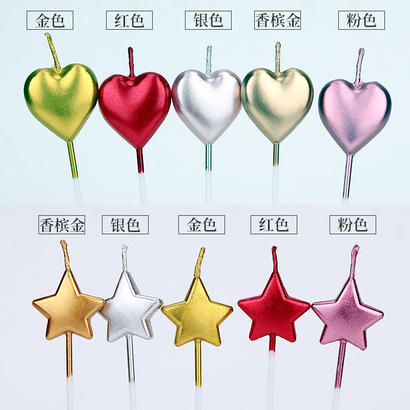 Net Red Heart Shaped Heart-shaped Candle Birthday Cake Decoration Items Creative Romantic Smoke-free Children Gilded Loving Candles