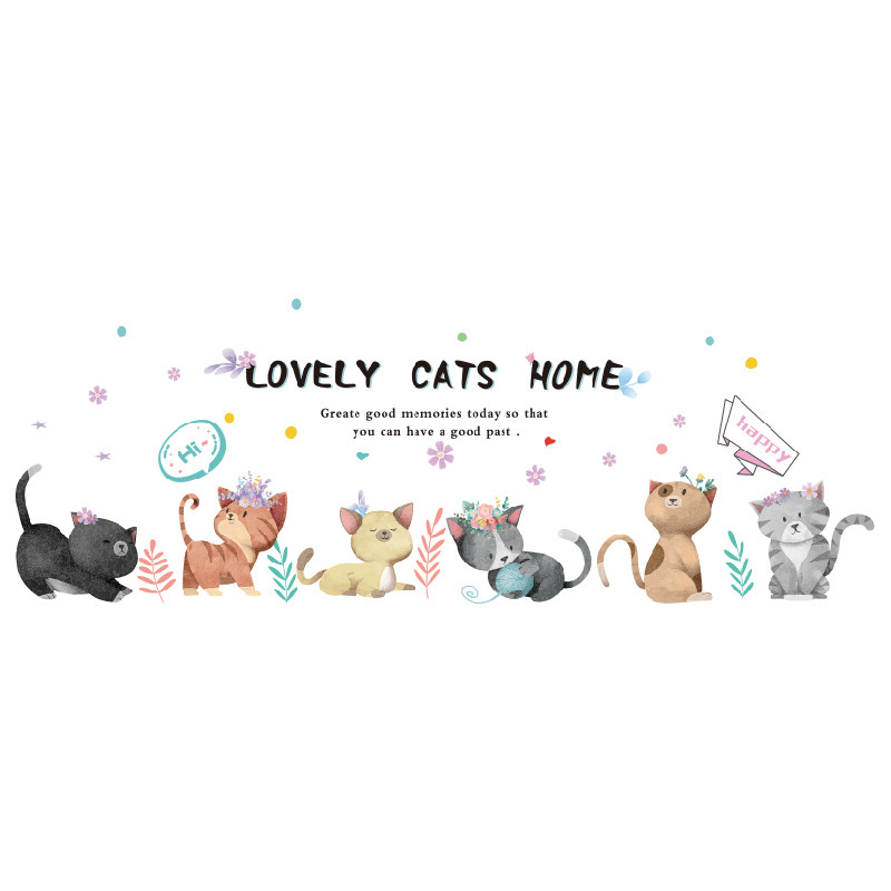 Creative personality cartoon lovely room cabinet wall decoration cat wall paste bedroom head wall animal paste
