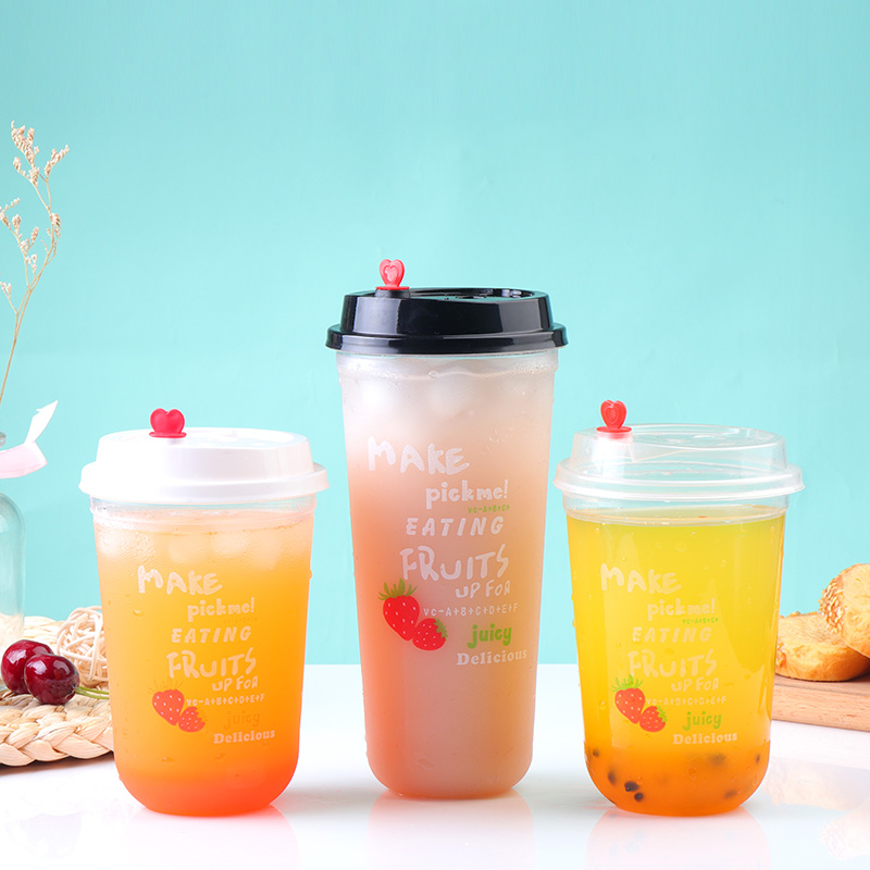 90 caliber fat cup net red u-shaped disposable milk tea cup custom plastic cup with lid dirty juice drink cup