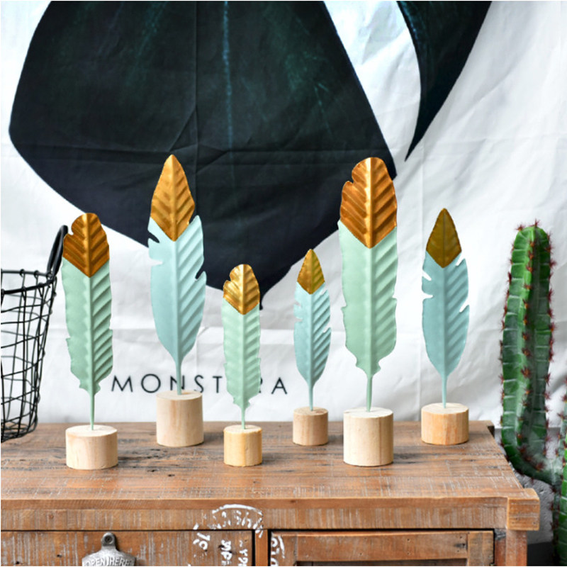 ins Nordic minimalist creative iron art feather living room table Xuanguan shop bedroom decorative desktop furnishing hem
