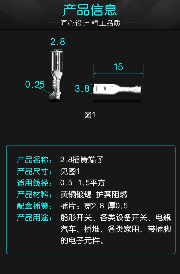 6 3 4 8mm 2 8mm Cold pressed wiring connection terminals plug-in spring quality thickened brass with protective sleeves